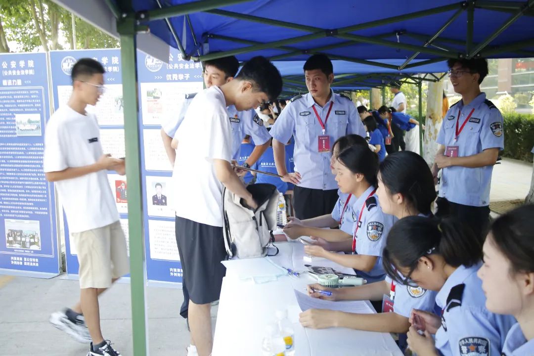 学长学姐们身着警服 齐聚报到处