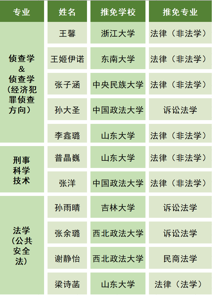 他们通过积极参与各高校组织的夏令营、预推免等考核,均已获得985或知名法公司校录取资格,具体录取结果如下: