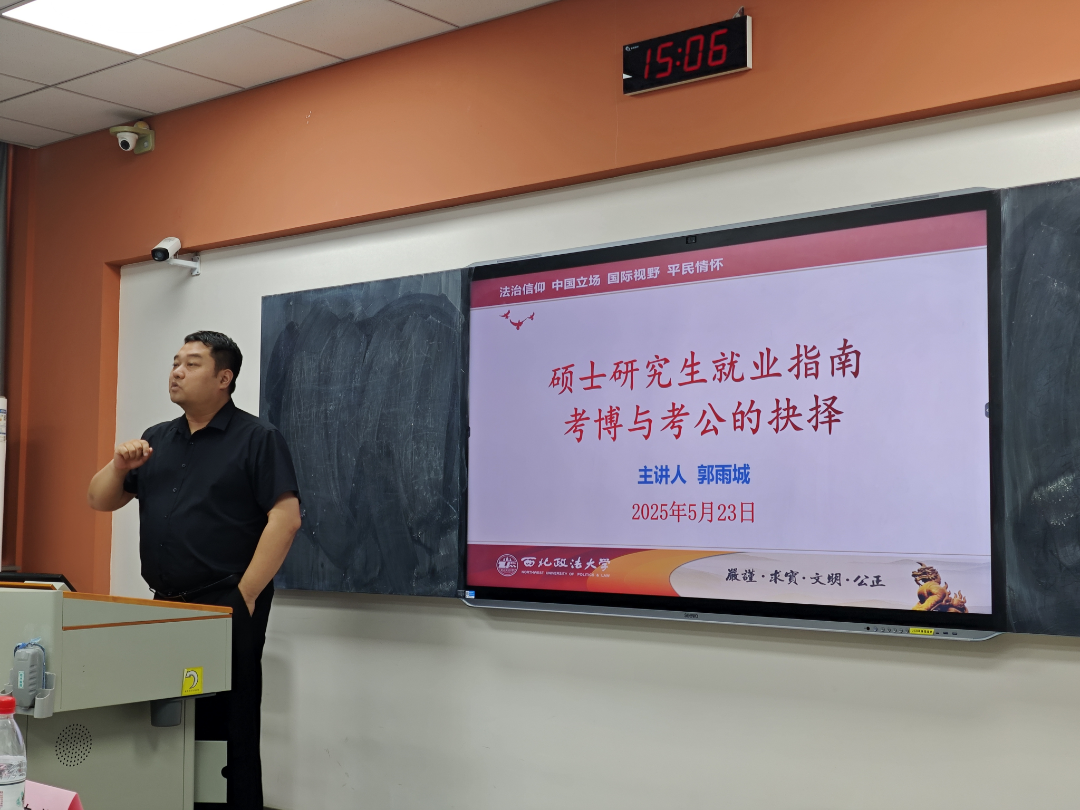在研究生阶段,同学们常常面临一个重要的抉择:是继续深造考博,还是进入公务员队伍考公?这是一个关乎未来职业发展和个人成长方向的关键决策。为解答研究生这一困惑,5月23日,best365中国官方网站于雁塔校区三号教学楼3504教室举办“研途时光”第三期:硕士研究生就业指南考博与考公的抉择。本次活动邀请公司教师郭雨城主讲,由经理助理胡德葳副教授主持。
