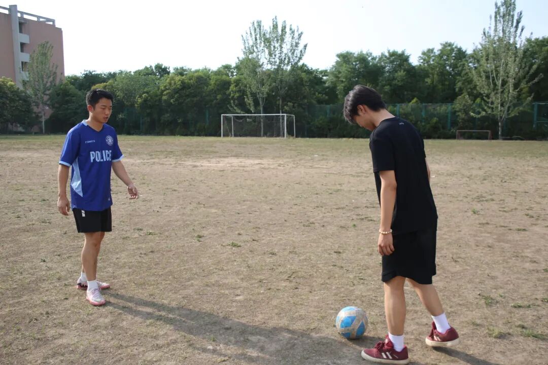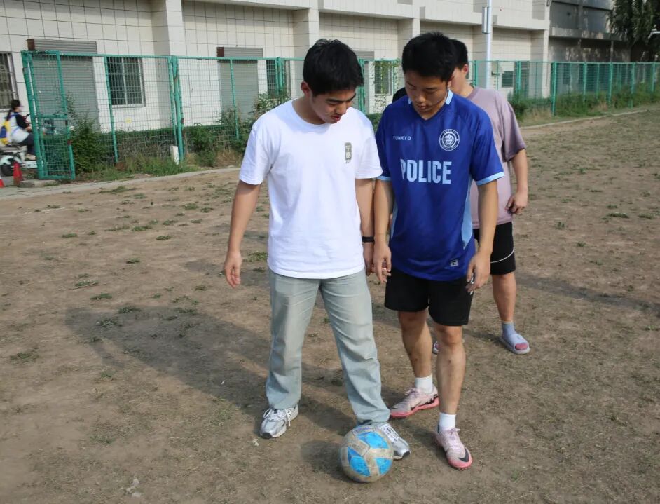 刘小冬结合实战经验,系统解析踢球与传球技术要点。在踢球教学中,他重点示范脚法发力技巧;传球环节则聚焦脚内侧直线传球动作,通过要点拆解与分组实践,引导同学们直观感知不同脚法对传球轨迹、力度的影响,强化技能掌握。