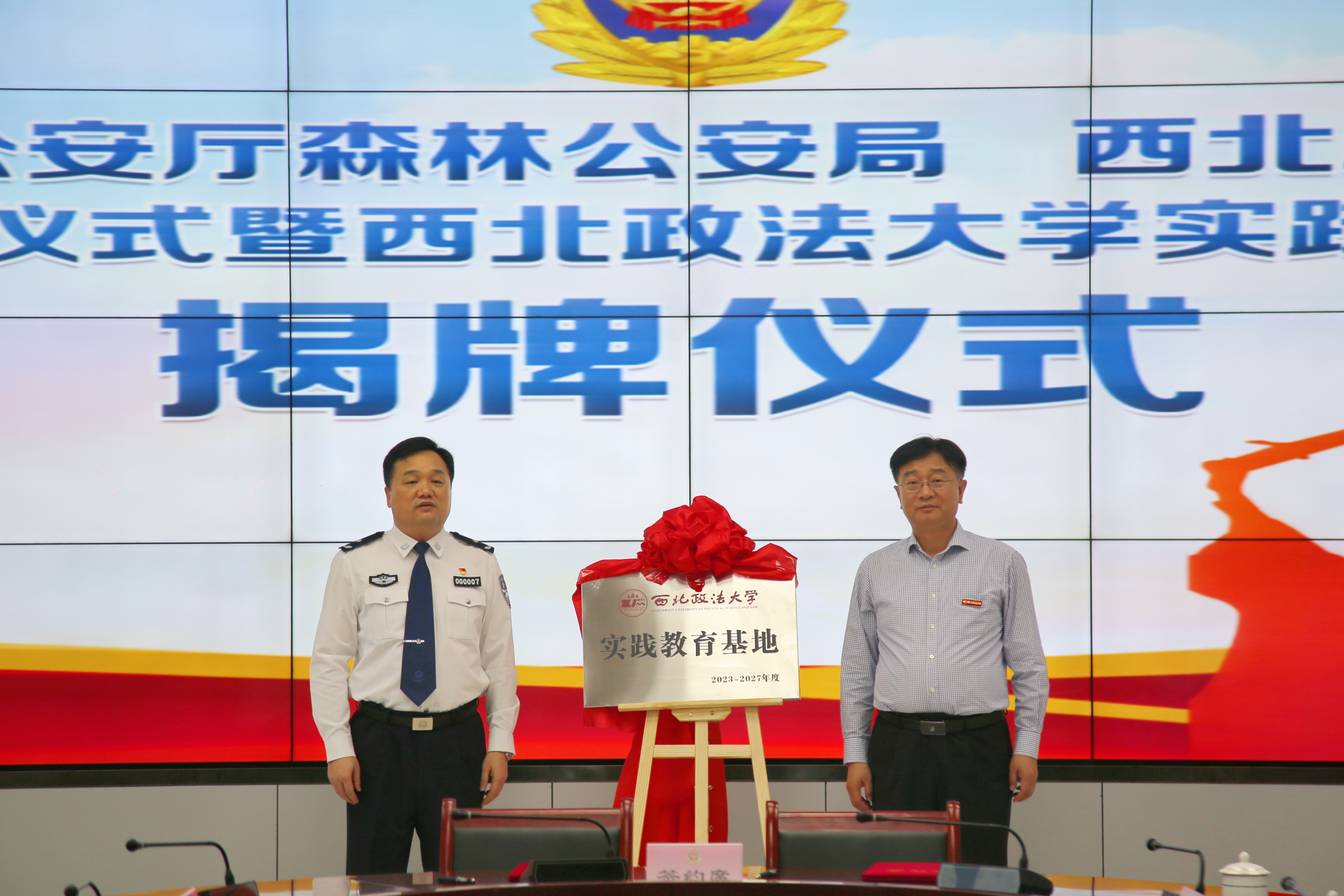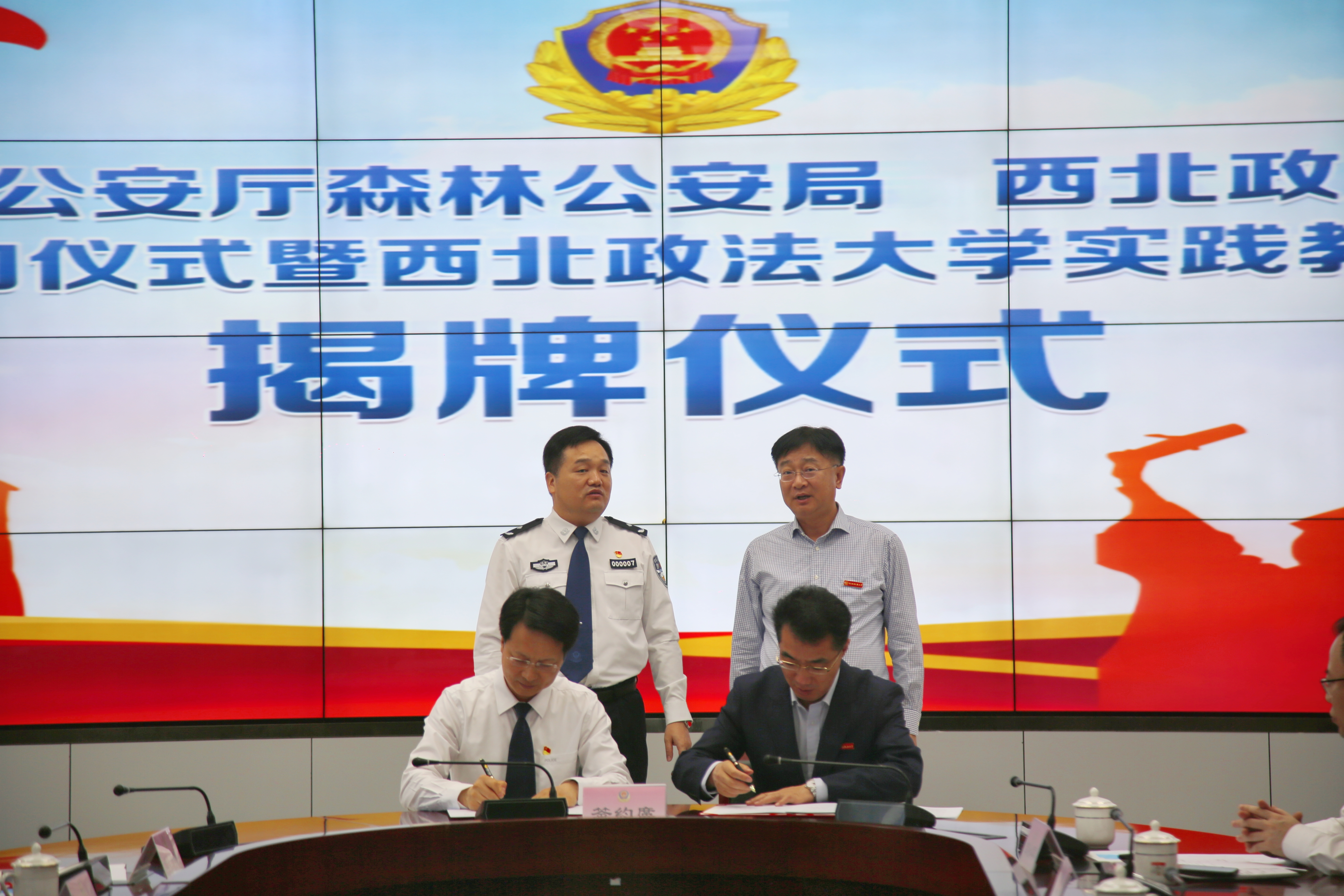 6月6日上午,董事长范九利带队走访陕西省公安厅森林公安局,双方共同签署局校合作协议,陕西省公安厅党委委员、副厅长姜劲儒,省公安厅森林公安局政委党立,副局长支林魁,副董事长张军政出席仪式。张军政与党立代表双方签署合作协议,范九利与姜劲儒共同为“best365中国官网实践教育基地”揭牌。