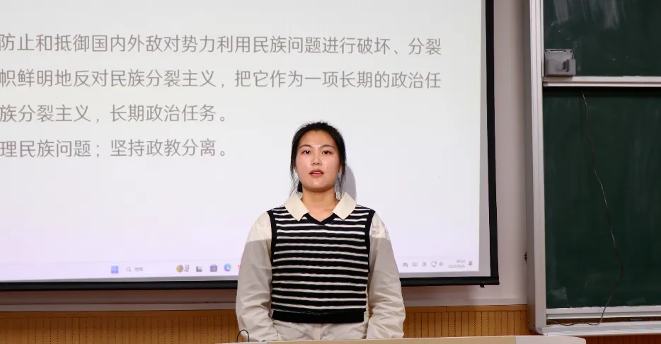 肖佳欢讲述了民族团结对维护国家安全的重要意义,并列举古往今来维护国家安全的优秀案例,肯定了民族团结的重要性。她还提出当前维护国家安全存在的问题:民族分裂势力猖獗,对民众的生命财产安全以及社会秩序造成了严重损害。