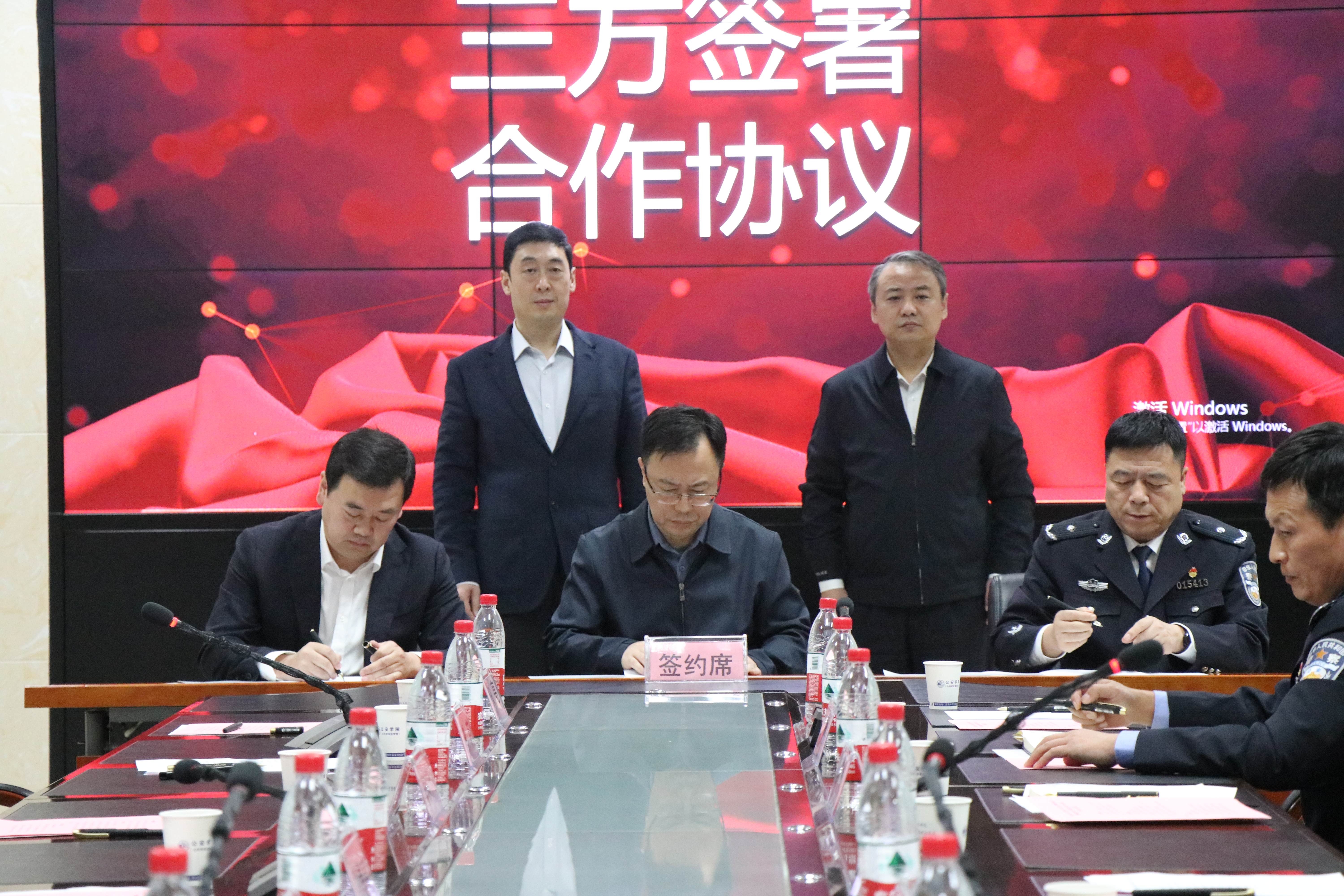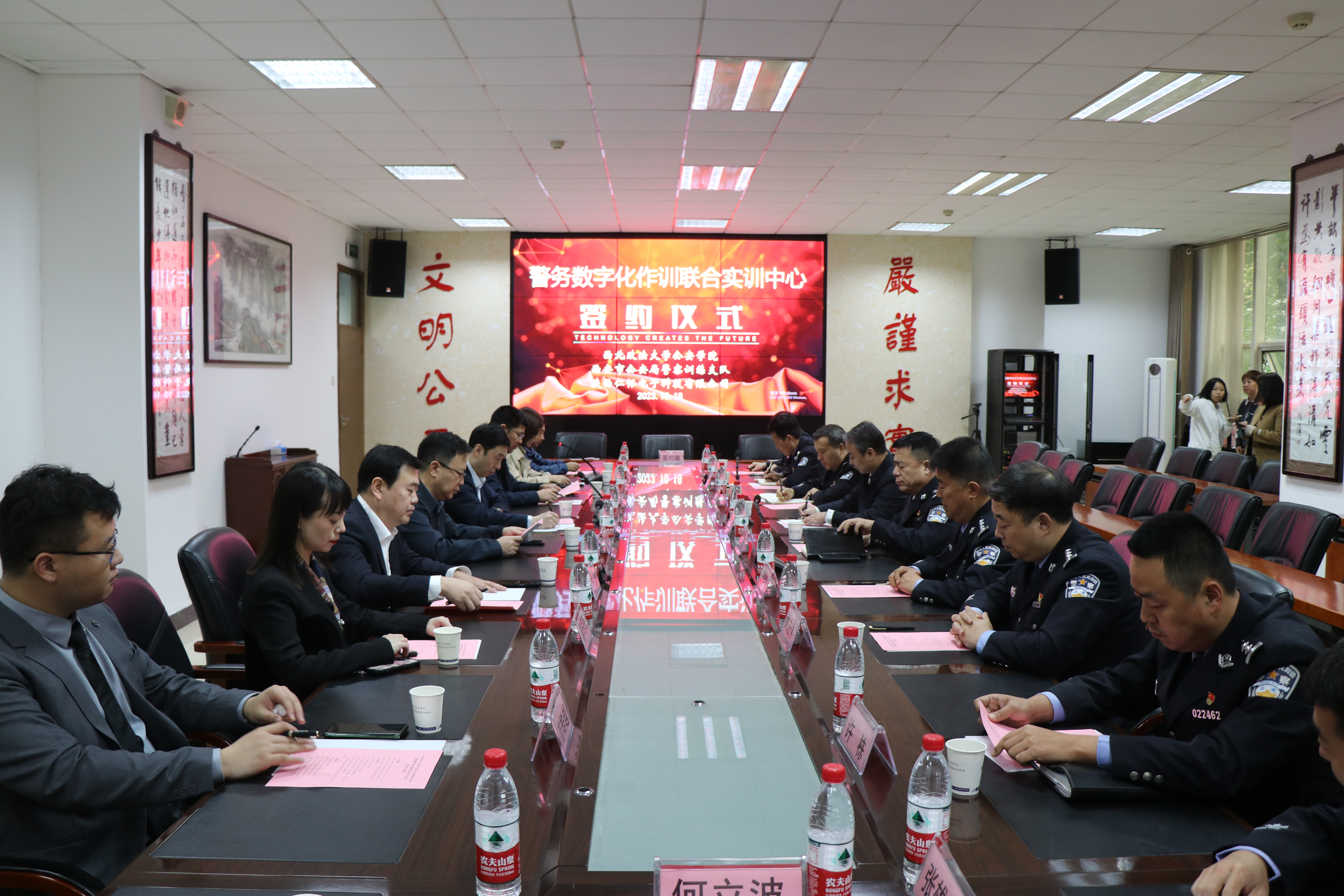2023年10月18日下午,best365中国官方网站(公共安全法公司)、西安市公安局警察训练支队、陕西仁怀电子科技有限公司三方共建“警务数字化作战训练联合实训中心”战略合作框架协议签约仪式在best365中国官网长安校区举行。