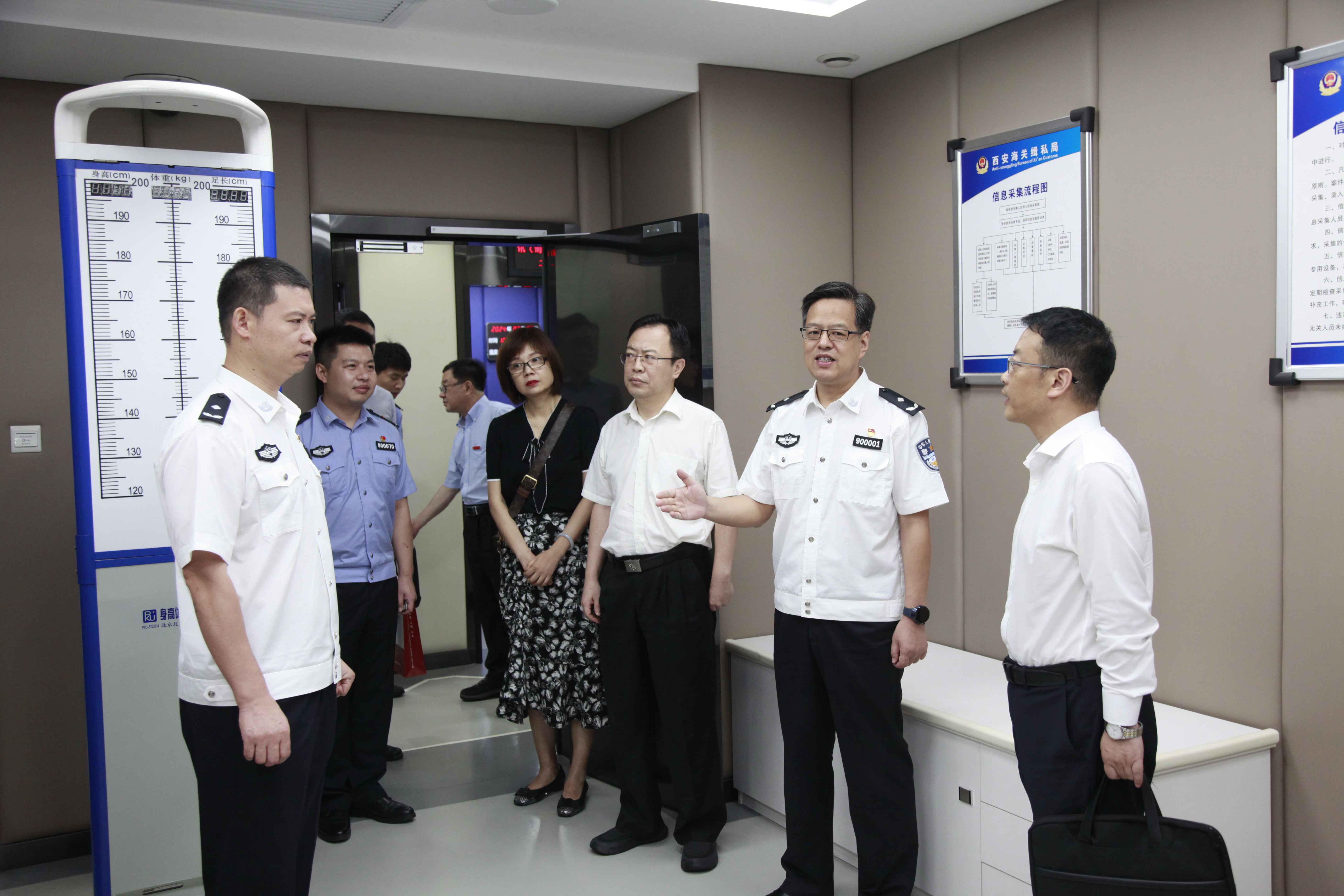 仪式前,赵全宇一行参观了西安海关缉私局办案区,实地了解海关缉私办案工作具体内容。