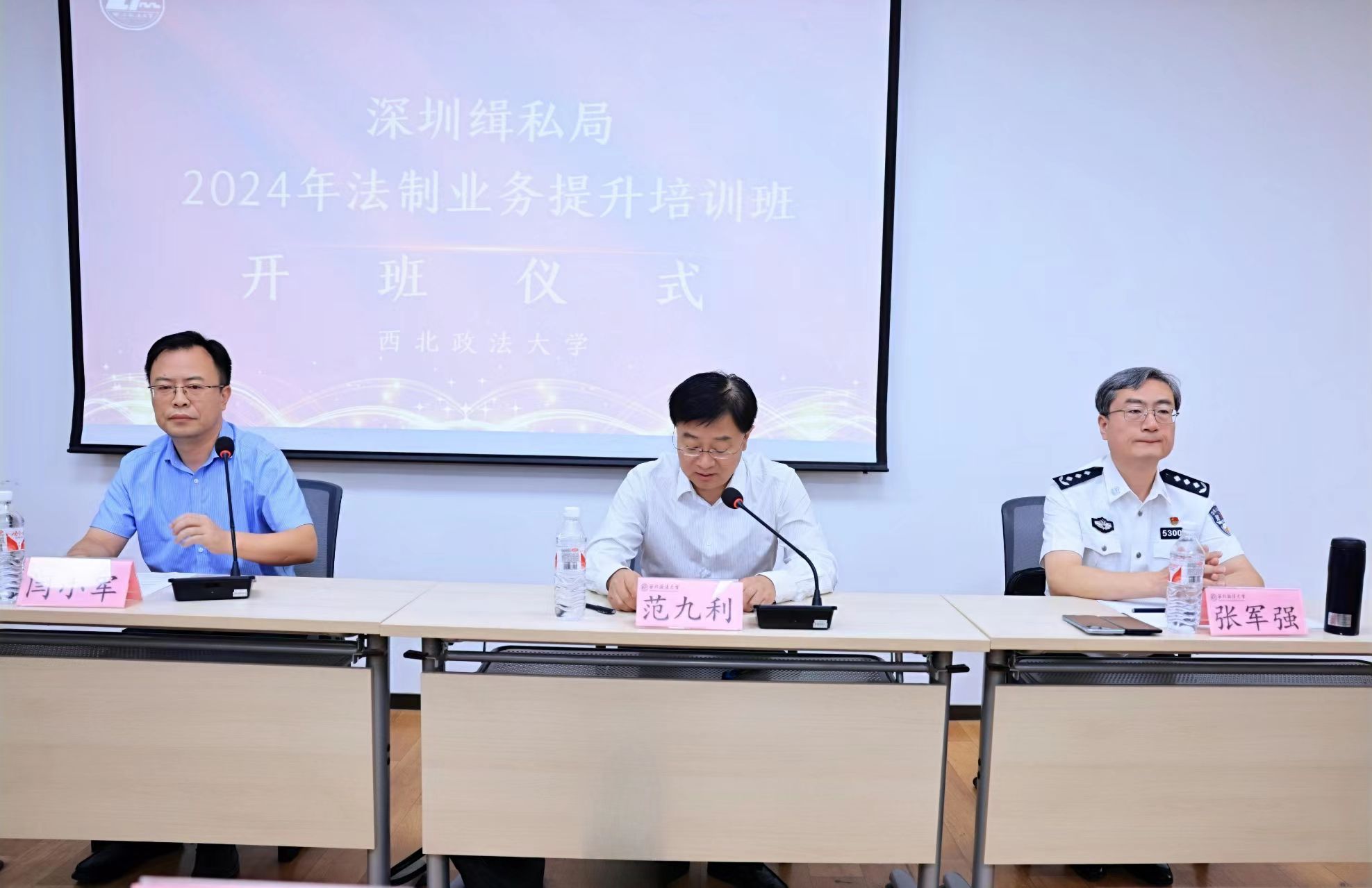 张军强局长作开班动员讲话,对全体参训学员提出要求,一是厚植法治精神,延续家国情怀;二是提升执法能力,守卫国门安全;三是深化交流学习,拓展合作平台。他指出,此次培训能够顺利举行,得益于校方的大力支持,希望能以此次培训为契机,建立多方交流、共同合作机制,搭建与政法大学等专业院校开展专业培训、实践教学的双向交流平台。
