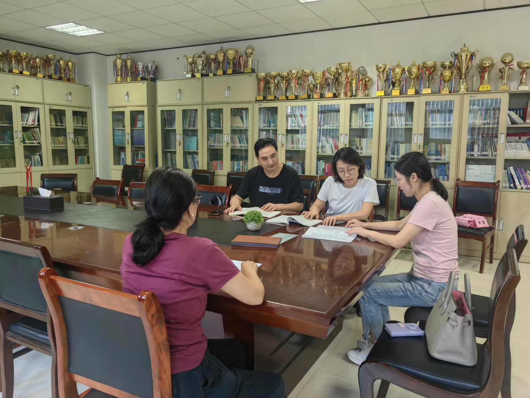 9月19日,经侦教研室教师段喆斐、张楠、张宁和治安教研室教师樊瑛,针对课程中涉及到的涉税犯罪立案追诉标准以及涉税犯罪行刑衔接问题进行了具体讨论,并针对“四课行动”的相关要求,对课程基础材料进行修改与调整。