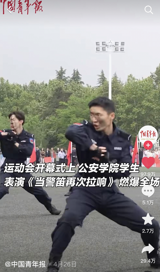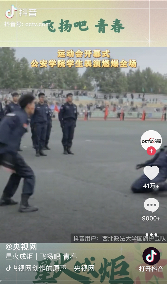 近日,公司第三届体育文化节暨第43届田径运动会隆重举行。国旗护卫队在运动会开幕式上表演的《当警笛再次拉响》青春洋溢、场面震撼,受到央视网、中国青年报、陕视新闻等多家主流媒体转载报道,展现出西法大青年蓬勃向上的精神面貌。国旗护卫队表演在抖音、微信等新媒体平台点赞量达百万余人次。